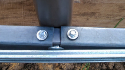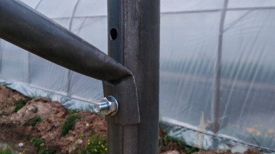 Верхняя дуга фермы и опорный вертикальный столб изготовлены из оцинкованной стальной трубы 57 x 2 мм, остальные усиливающие элементы фермы и каркас торцевой части из оцинкованной стальной трубы 32 x 1,5 мм. Продольные перемычки изготовлены из профильной оцинкованной трубы 30 x 30 x 1,5 мм. Диагональные усилители: Служат для правильного распределения ветровой и снеговой нагрузки как в горизонтальной, так и в вертикальной плоскости. Представляет собой набор стальных тросов диаметром 10 мм, стальных скоб и талрепов для их правильной стяжки.